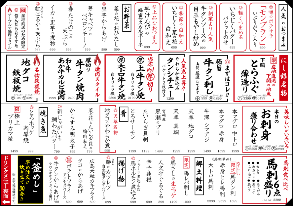 ★ 新公式ホームページができました‼ こちら⇒牛タンと地魚 居酒屋 にし銀 |