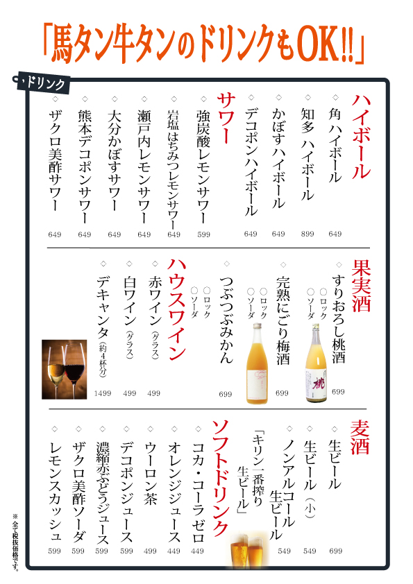 (馬タン牛タン)17:00~23:30
